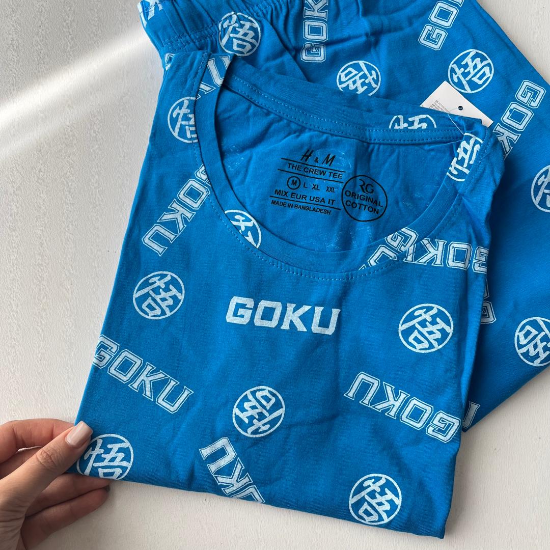 طرح Goku زمینه آبی:عرض تیشرت بدون کشسانی 48سانت، عرض ران بدون کشسانی 27 سانت