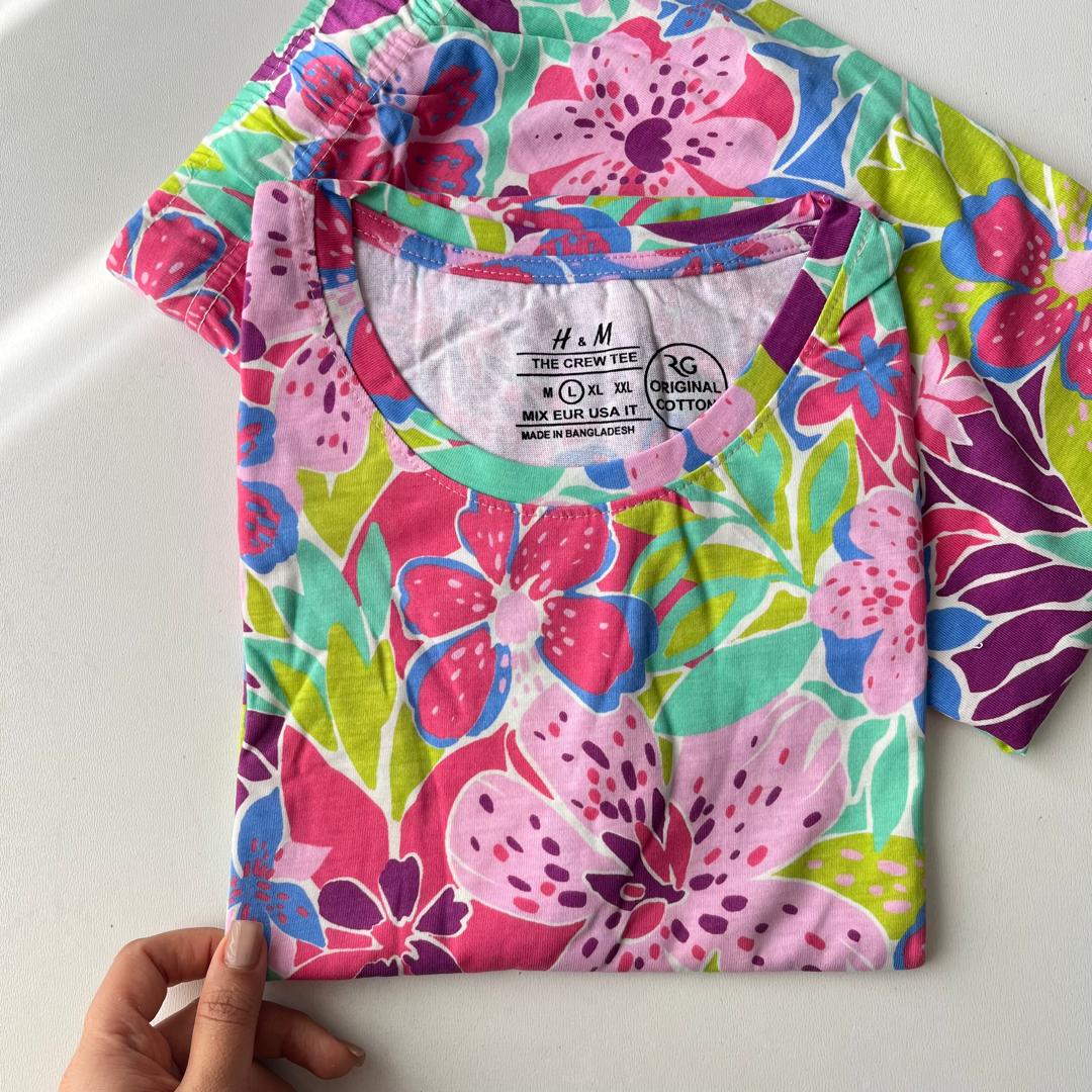 طرح گل های بهاری: عرض تیشرت بدون کشسانی 50 سانت، عرض ران بدون کشسانی 27 سانت